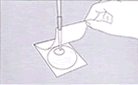 7、將測試片放置在平坦的外表面,揭起上層膜。使用吸管將1ml樣品垂直低在測試片的中央處。 |